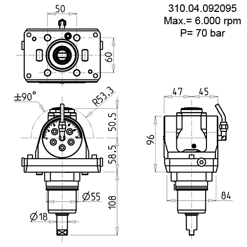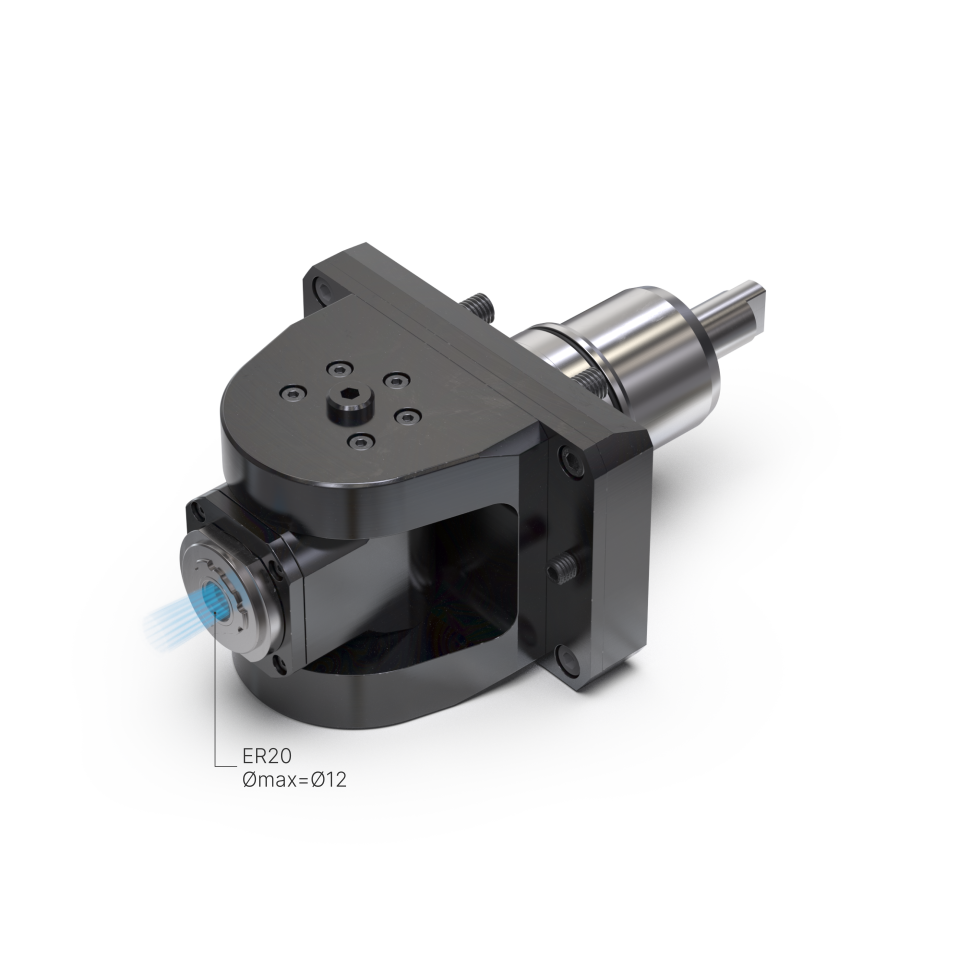 Justierbarer angetriebener Werkzeughalter - drehbar um +/- 90º mit Innenkühlung bis 70bar, 6000rpm, ER20