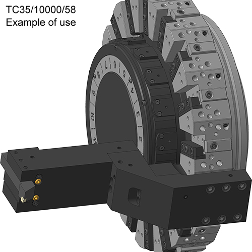 Dieser Werkzeughalter wird normalerweise auf TC/TD Maschinen mit 12fach Revolver montiert. Er kann auch auf den 16fach Revolverschieben aufgebaut werden, wobei die letzten 2 Schrauben ungenutzt bleiben. Die generelle Nutzung wird dadurch nicht eingeschränkt.