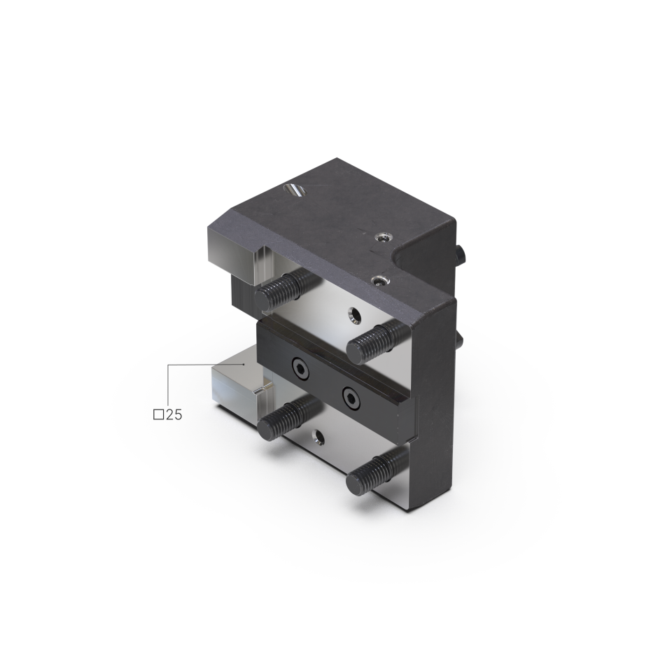 Dieser Werkzeughalter ermöglicht die Aufnahme eines 25 mm Vierkants sowohl rechts- als auch linksseitig. Zu diesem Zweck kann der Spannkeil sowohl unterhalb als auch oberhalb des Vierkants angebracht werden.