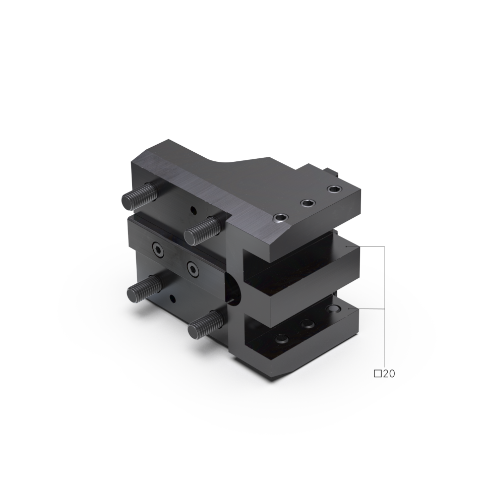Werkzeughalter für zwei Vierkant 20x20 - mit Versetzung in Y-Richtung.