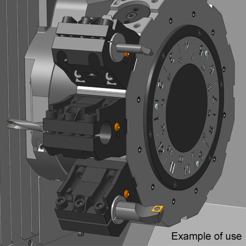 - The toolholder is reversible. This means that the tool can be mounted facing the left spindle or the right spindle.