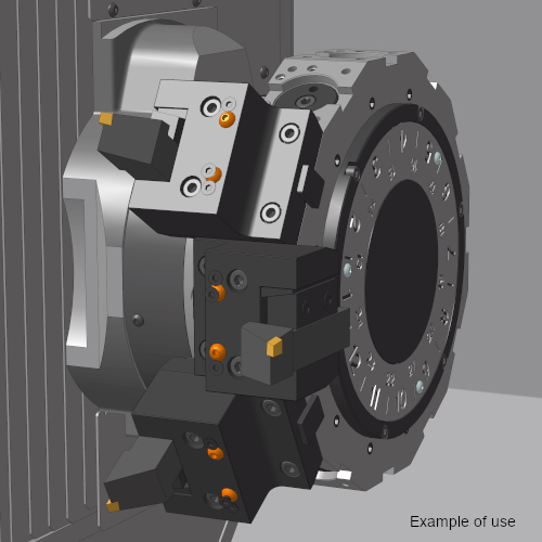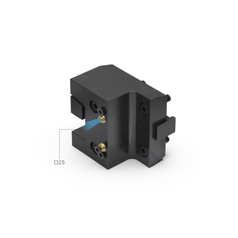 - The toolholder is equipped with two adjustable coolant nozzles - one for each mounting option: the tool facing the left or the right spindle.