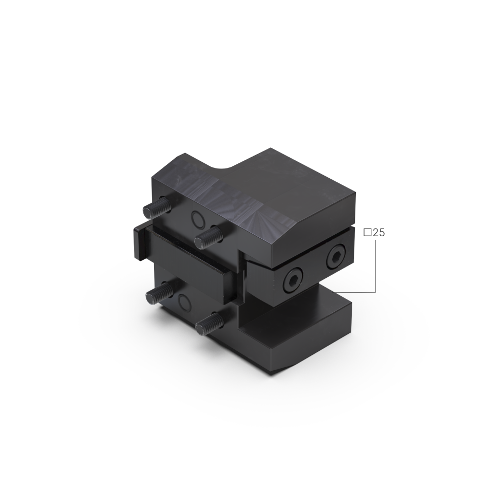 - This toolholder allows to mount external square tools of 25 mm - for left side or right side mounting. Therefore the fastening gib can be mounted below or in top of the tool.