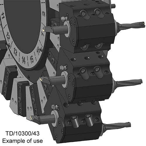 Portaherramientas para montar 2 herramientas de interiores de Ø32 mm. Sirve para realizar mecanizados interiores en el cabezal y en el subcabezal.