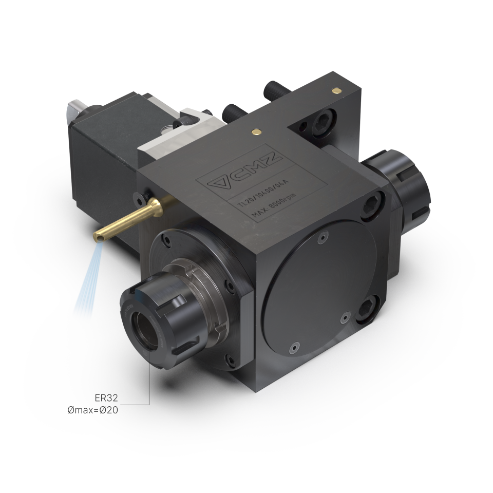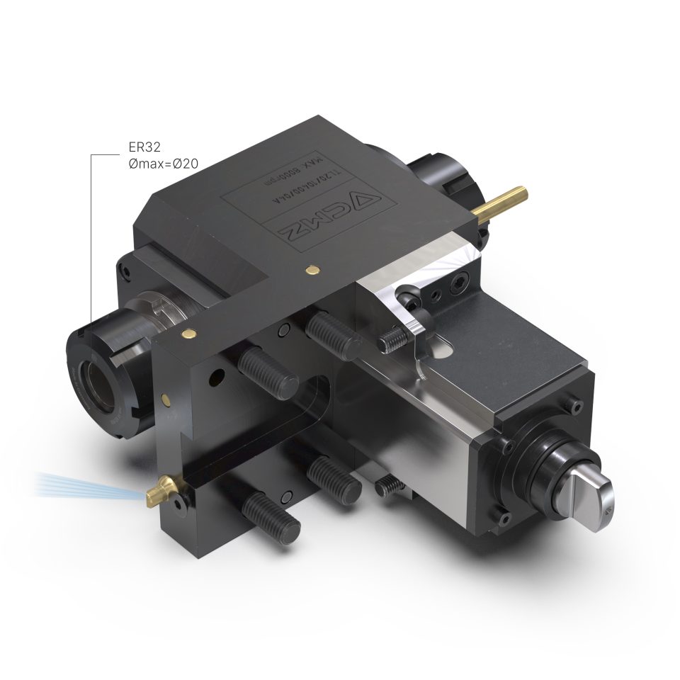 Portaherramientas motorizado axial doble con refrigeración exterior (8.000 rpm).