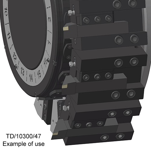 El portaherramientas admite herramientas de exteriores de cuadrado de 25 mm tanto de derechas como de izquierdas. Para ello la cuña y la regla de amarre se pueden montar arriba o abajo.
