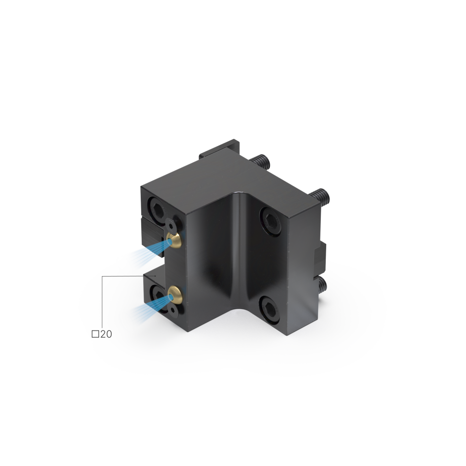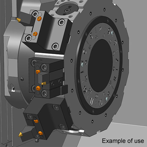 El portaherramientas admite herramientas de exteriores de cuadrado de 20 mm tanto de derechas como de izquierdas. Para ello la cuña y la regla de amarre se pueden montar arriba o abajo.