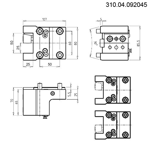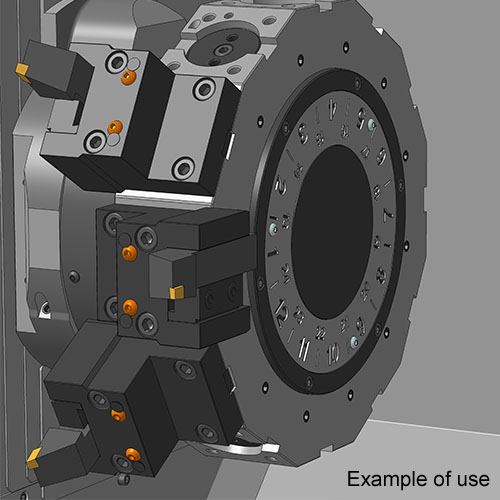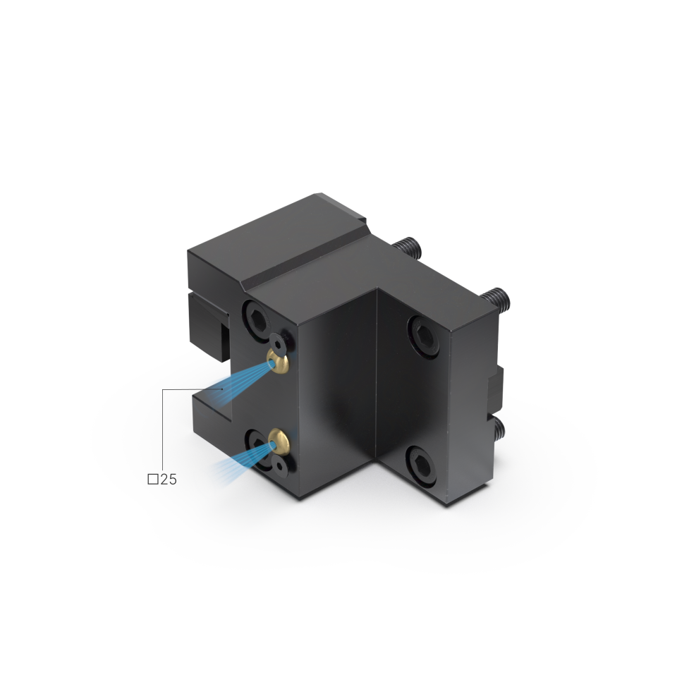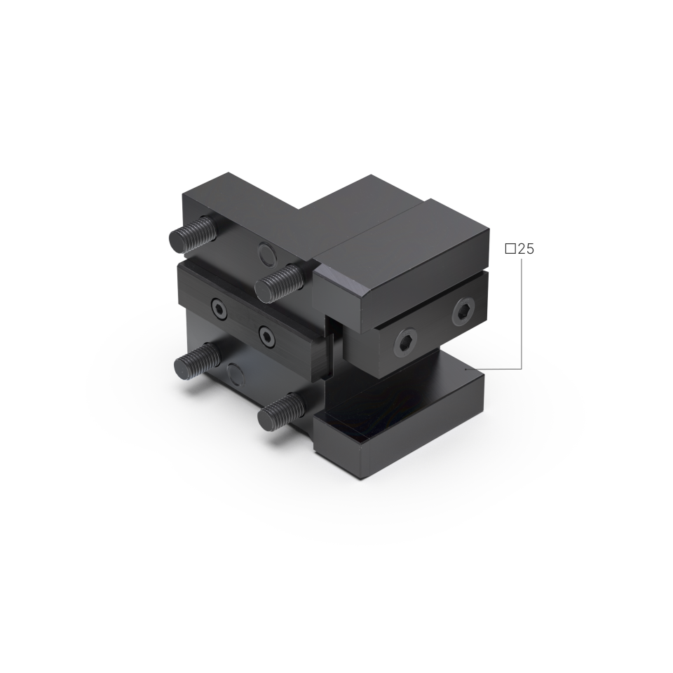 El portaherramientas admite herramientas de exteriores de cuadrado de 25 mm tanto de derechas como de izquierdas. Para ello la cuña y la regla de amarre se pueden montar arriba o abajo.
