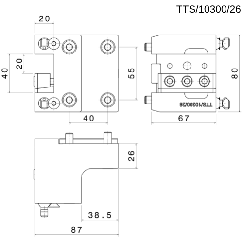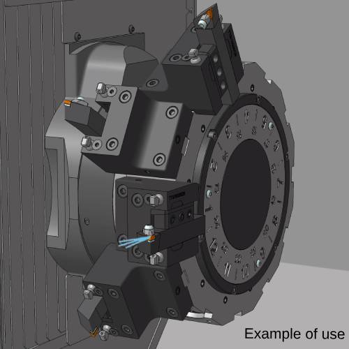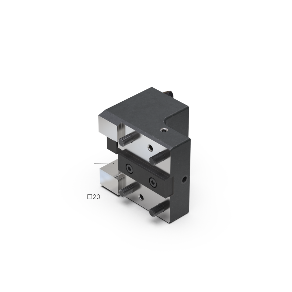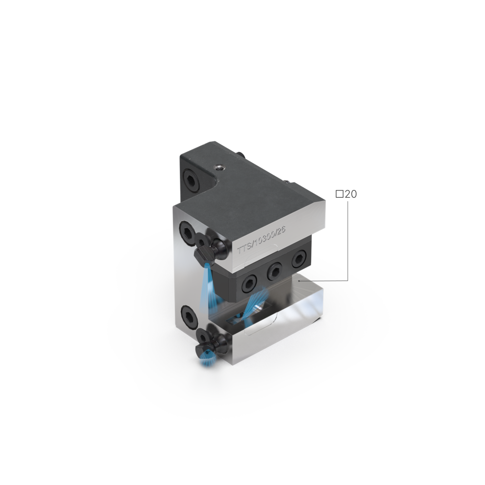 El portaherramientas admite herramientas de exteriores de cuadrado de 20 mm tanto de derechas como de izquierdas. Para ello la cuña y la regla de amarre se pueden montar arriba o abajo.