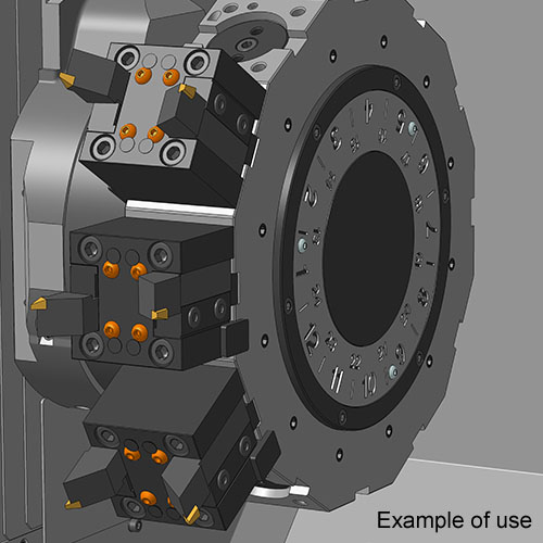 El portaherramientas admite herramientas de exteriores de cuadrado de 20 mm tanto de derechas como de izquierdas. Para ello la cuña y la regla de amarre se pueden montar arriba o abajo.