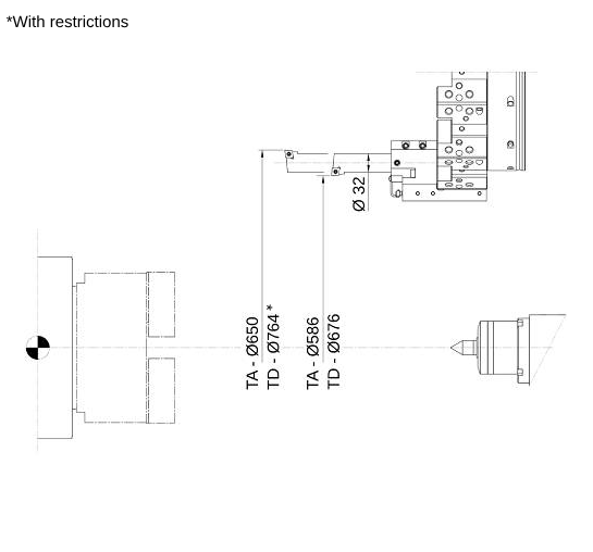 El portaherramientas permite torneados exteriores hasta Ø586mm con mandrinos de Ø32mm y Ø576mm con mandrinos de Ø40mm en modelos de torno TA de 12 posiciones