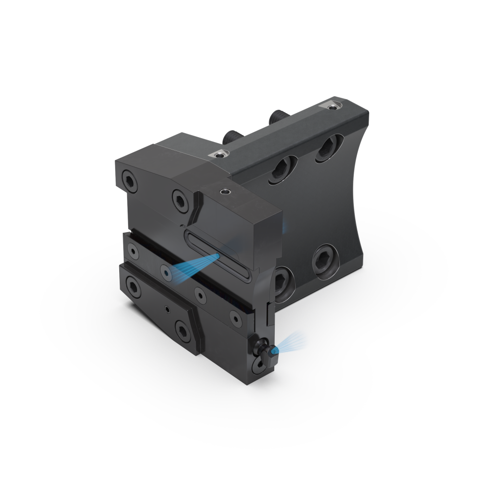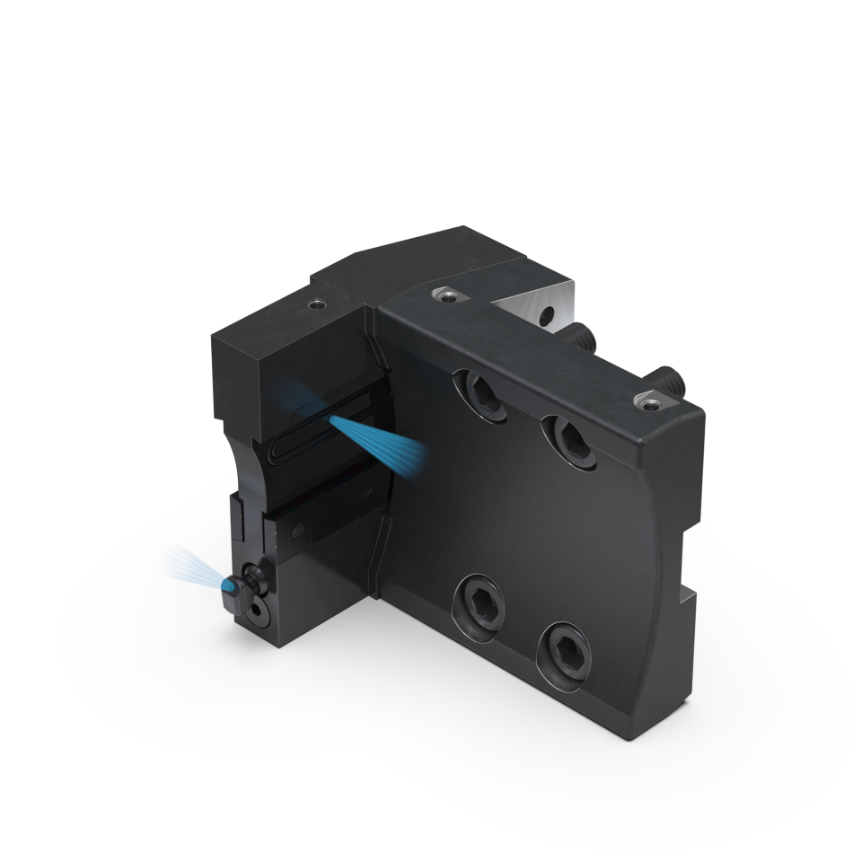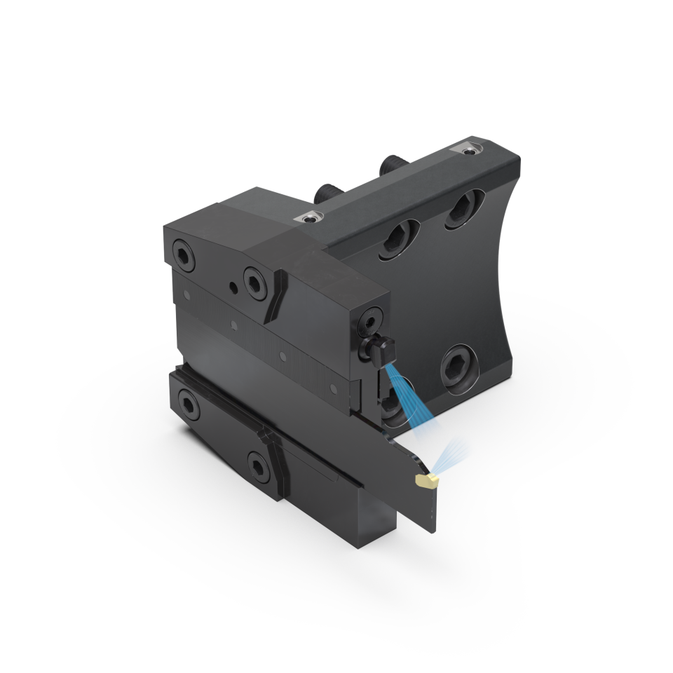 Portaherramientas para tronzar con lama con refrigeración interior.